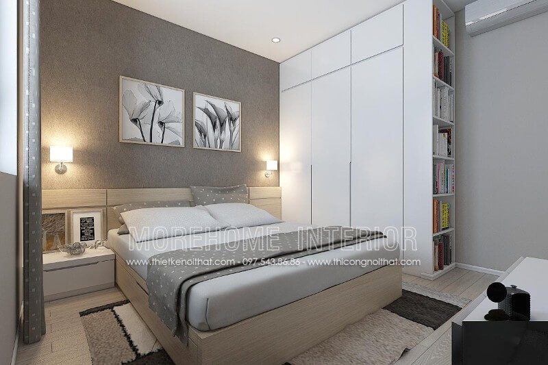 Thiết kế giường ngủ 2 người dành cho chung cư nhỏ phong cách hiện đại, trẻ trung