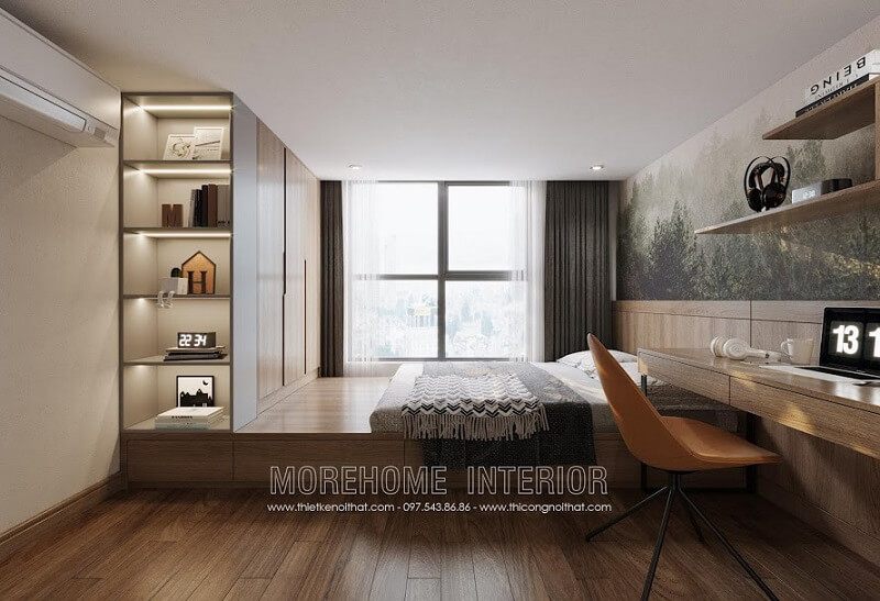 Mẫu thiết kế nội thất phòng ngủ nhỏ gọn tiện nghi với mẫu giường ngủ gỗ cao cấp được yêu thích tại MoreHome