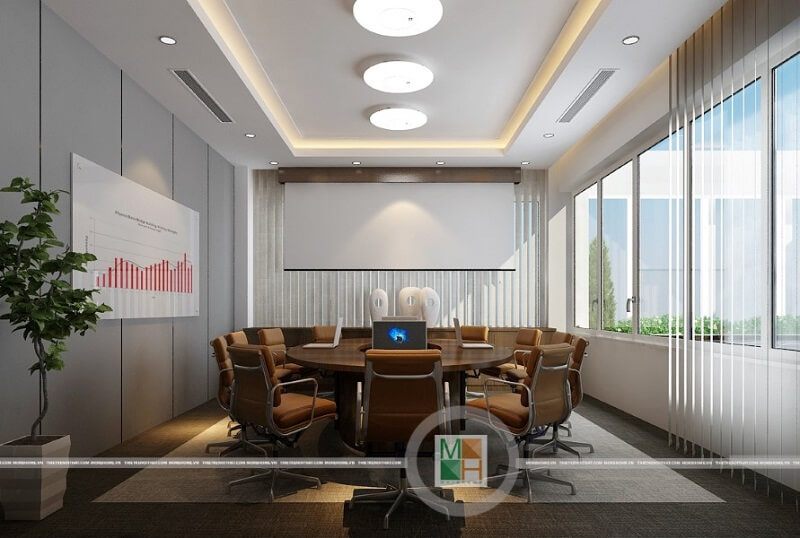 Mẫu thiết kế nội thất phòng họp văn phòng công ty Đèo Cả cao cấp với cách bố trí hợp lí khoa học