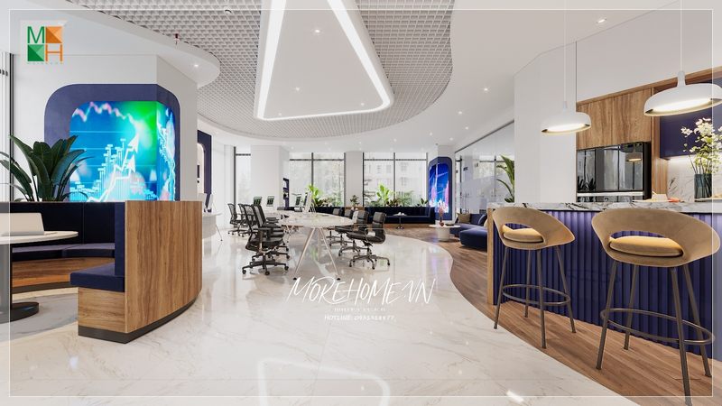 Thiết kế văn phòng mang phong cách thiết kế hiện đại mang đến 1 góc nhìn mới mẻ. độc đáo cho không gian việc thêm hiệu quả, ấn tượng gây được sự chú ý với mọi người nhìn.