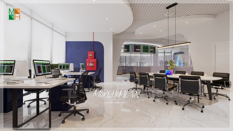 Thiết kế không gian văn phòng làm việc hiện đại với nội thất tiện nghi hỗ trợ tốt cho công việc