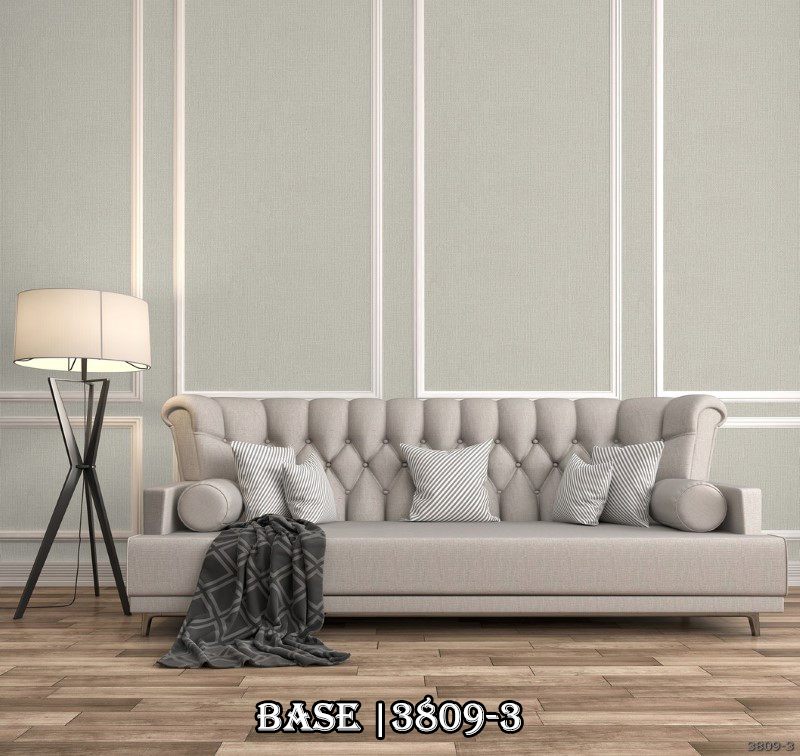 Những ô phào vuông kết hợp với giấy dán tường màu xám 3809-3 tạo nên một không gian hiện đại và tinh tế.