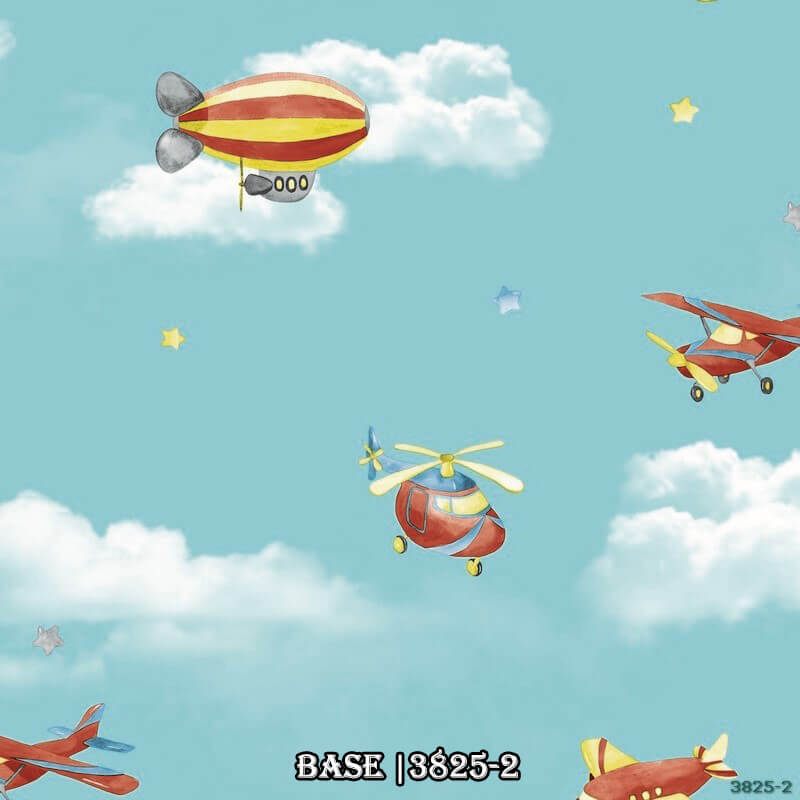 Mẫu giấy dán tường màu xanh dương với họa tiết máy bay, khinh khí cầu chắc chắn sẽ làm các bé yêu thích hơn căn phòng của mình.