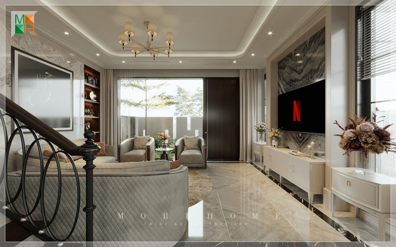 Sở hữu 1 vẻ ngoài tinh tế, mẫu thiết kế phòng khách biệt thự của Morehome luôn nhận được sự ưu ái của đông đảo các hộ gia đình.