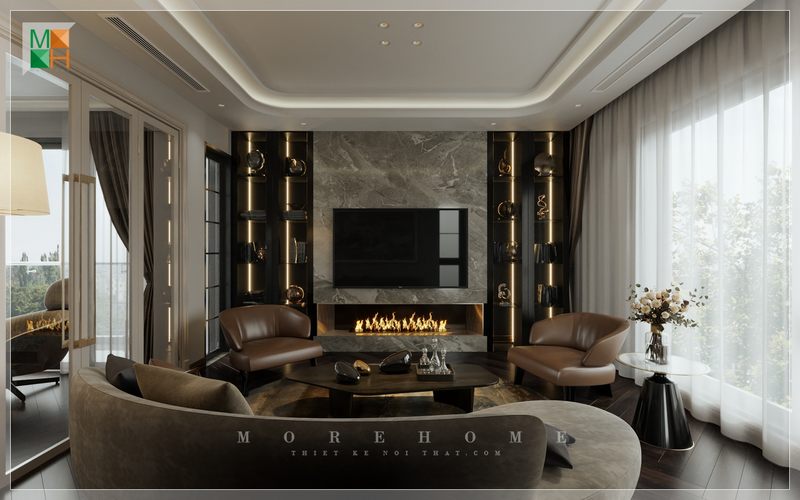 Gây ấn tượng với người nhìn bằng mẫu thiết kế phòng khách biệt thự đẹp sang trọng tinh tế và tiện nghi của Morehome.