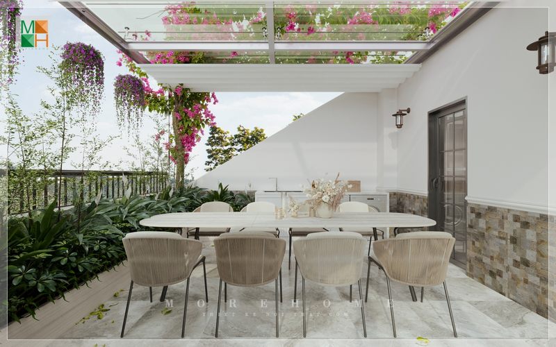 Xung quanh được trồng thêm những cây xanh, hoa lá màu sắc đan xen tạo cảm giác dễ chịu, tận hưởng những giây phút hạnh phúc cùng người thân