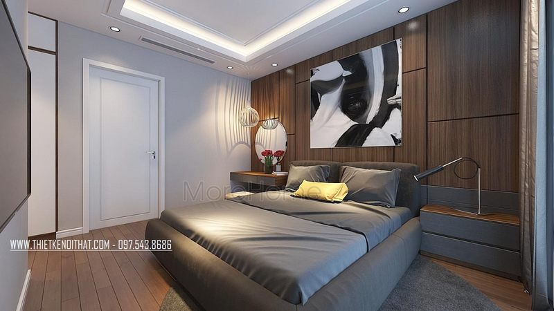Cừa gỗ công nghiệp màu trắng giúp không gian căn phòng được nổi và ấn tượng hơn trong mắt người nhìn.