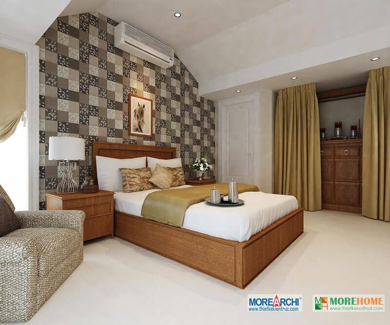 Thiết kế phòng thờ ngay trong không gian phòng ngủ với nội thất gỗ tự nhiên sang trọng.