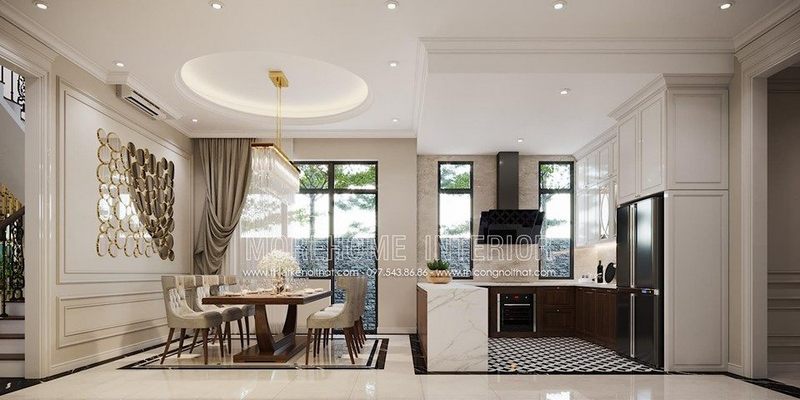 Bộ bàn ăn 6 ghế gỗ tự nhiên bọc nệm màu trắng tân cổ điển thoải mái, tiện nghi và có thẩm mỹ cao