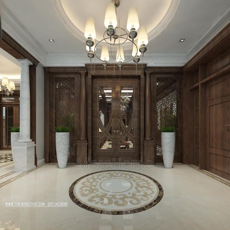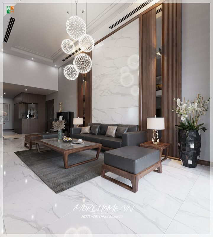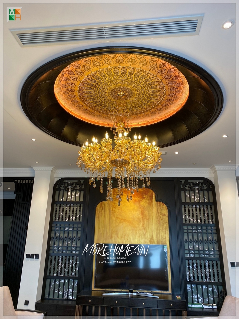 Trang trí nội thất phòng khách biệt thự đẹp với màu sắc á đông truyền thống