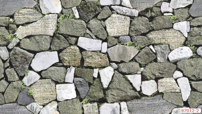 Đẹp tự nhiên với hình ảnh giấy dán tường 3d giả đá có in chữ và rêu xanh này