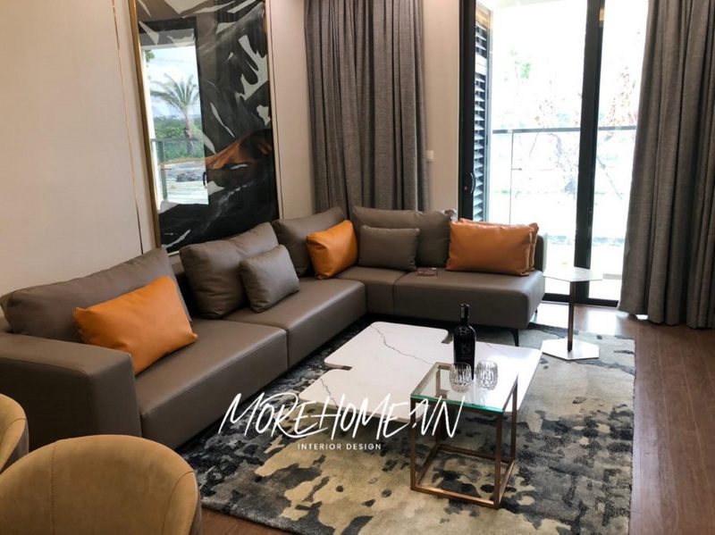 Bộ sofa bọc da màu nâu êm ái góp phần tăng giá trị thẩm mỹ và sự sang trọng cho không gian của căn phòng.