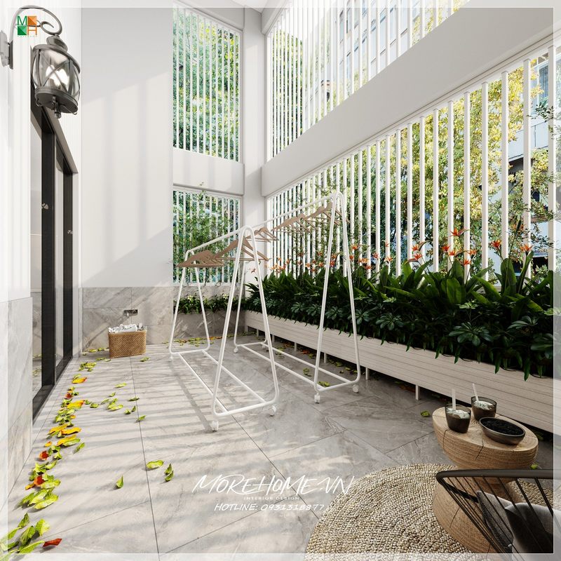 Tạo cho không gian logia thêm sinh động việc trồng thêm các tiêu cây, hoa đem lại sự sống không khí tươi mát và thẩm mỹ cao