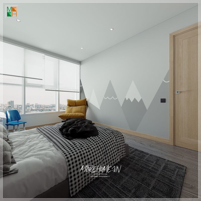 Thiết kế phòng ngủ chung cư mang đến cảm giác rộng rãi, thoải mái khi bước chân vào căn phòng.