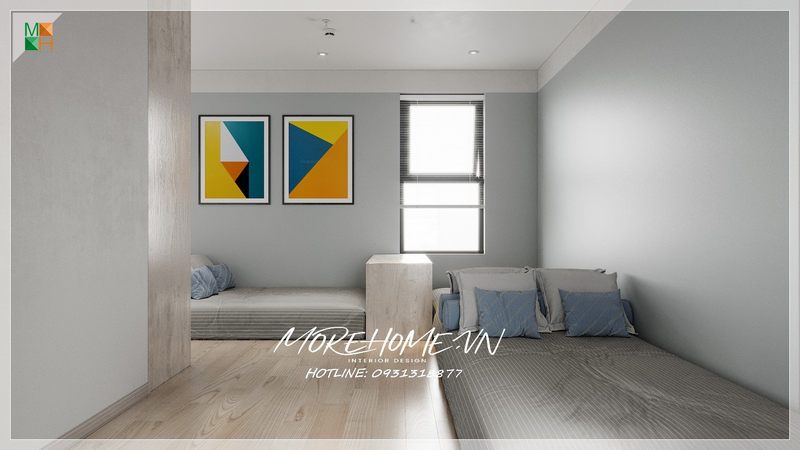Bố trí nội thất phòng ngủ chung cư hiện đại khoa học, chiếc giường ngủ đa năng tích hợp thêm ngăn kéo phía dưới giúp tận dụng thêm được không gian cất giữ đồ đạc