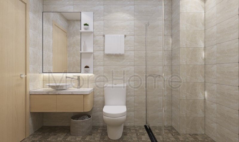 Sàn nhà được thiết kế bằng đá tự nhiên màu trắng cao cấp giúp tạo ra một không gian thoáng mát, sáng và sạch sẽ hơn.