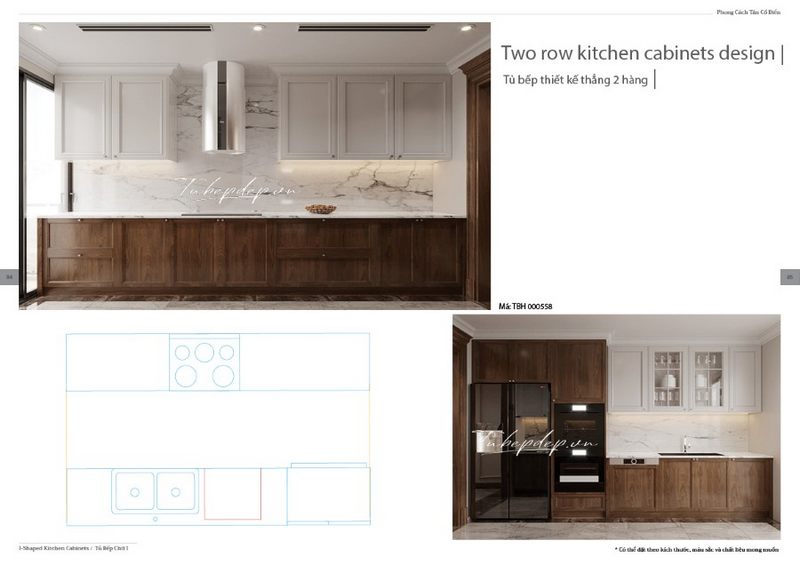 Mẫu thiết kế bếp chữ I này thích hợp với các không gian nhỏ như căn hộ, nhà phố.