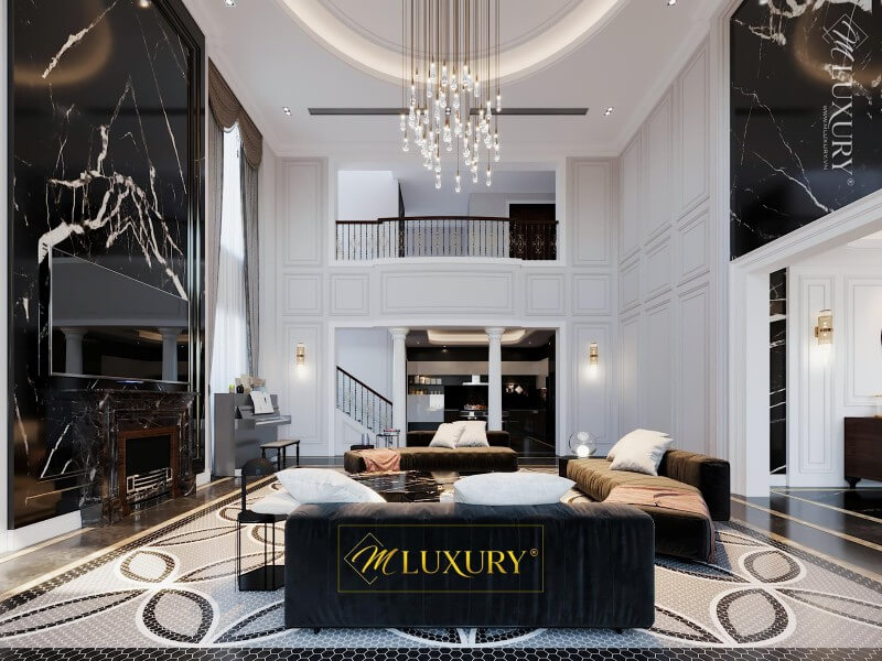 Thiết kế nội thất phòng khách phong cách tân cổ điển sang trọng, cao cấp
