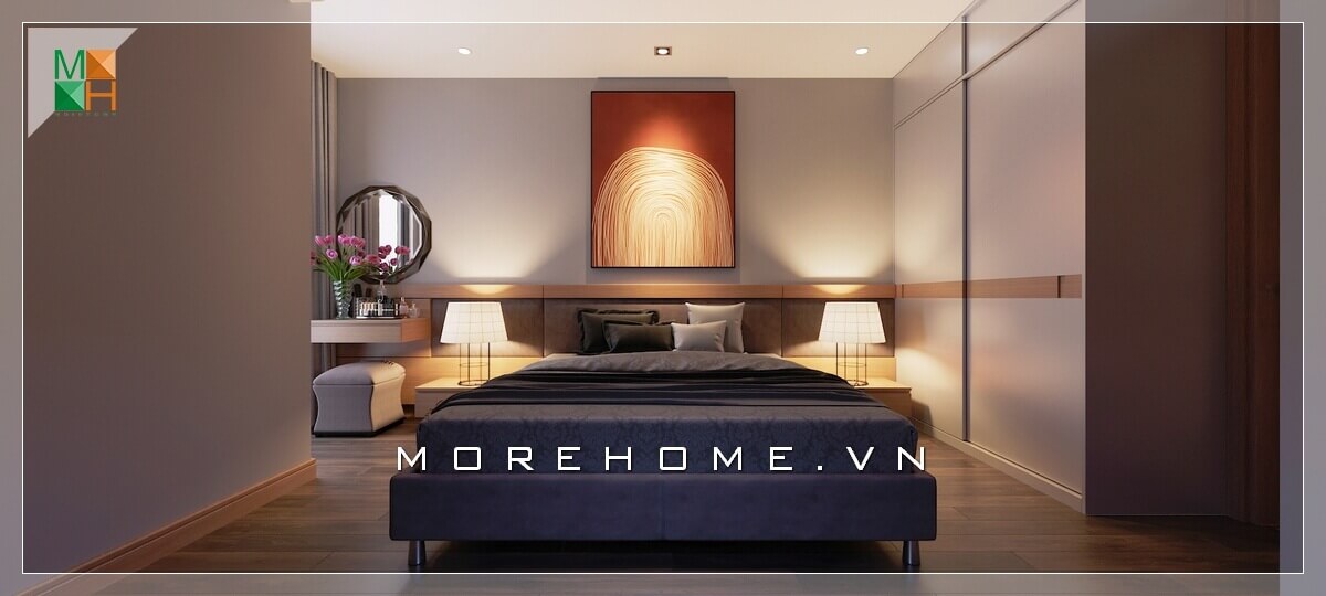 Mẫu thiết kế giường ngủ dạng bệt bằng gỗ bọc nỉ đầu giường tạo sự êm ái khi thư giãn nghỉ ngơi, phù hợp chung cư, nhà phố, biệt thự phong cách hiện đại